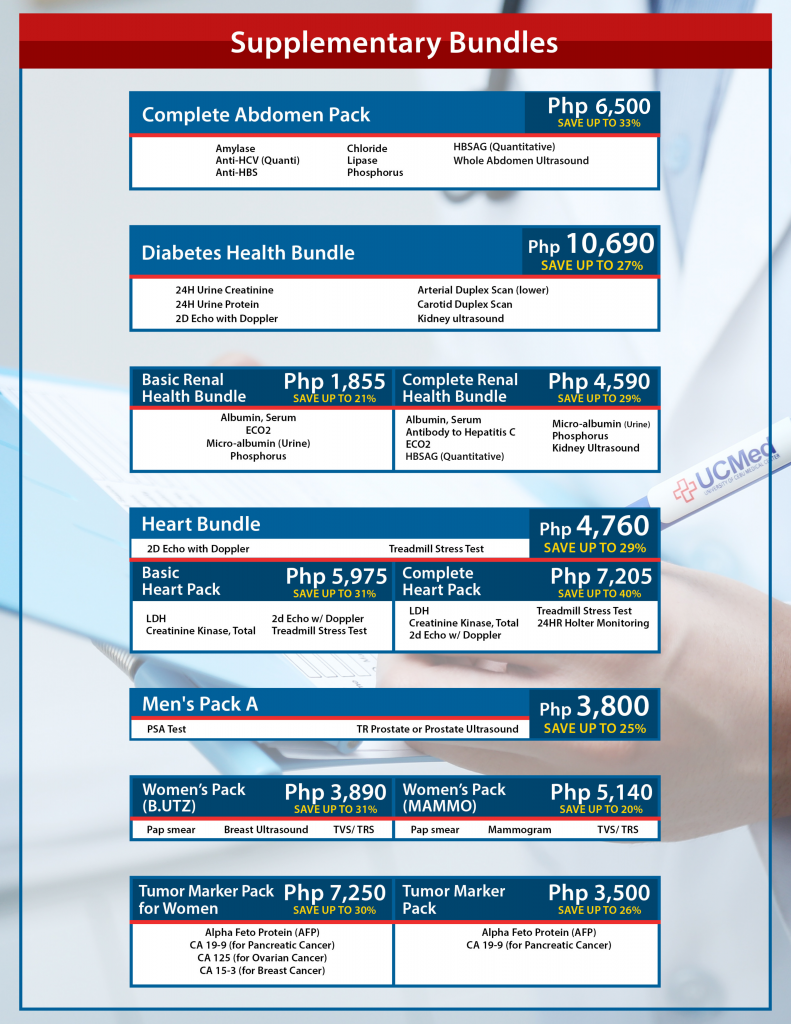 - Women’s Health Packages, such as Breast Ultrasound, Mammogram, and Tumor Marker Packs for Ovarian, breast, and pancreatic cancer.